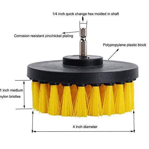 - 2. Medium stiffness bristle drill attachment is a perfect, cost-effective tool to have for cleaning a variety of applications. Use with variable speed drill for maximum cleaning control. Works great for cleaning boat/marine hulls, tires, grout/tile, tubs/showers, siding, linoleum, porcelain, or carpets (and many other applications!)