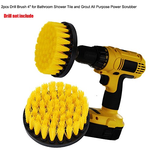 2pcs Drill Brush, 4" Drill Brush Bathroom Scrubber, Drill Brush Attachment Cleaning for Bathroom Shower Tile and Grout All Purpose Power Scrubber( Yellow)