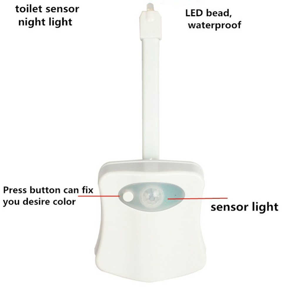 Very smart device,8-Color Home Toliet Bathroom Seat Light,equipped with Human Body Auto Motion Sensor, auto on when you approach in dark, and auto off after you leave, convenient and energy saving.Emitting soft light,more comfortable for your eyes. Lead your way safely and softly in the darkness. u0026nbsp;