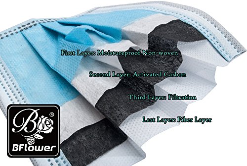 BFlower Four Layer Blue Color Disposable Charcoal Activated Carbon Mask Filter - 50 Pieces (Each Piece Is Individually Packed)