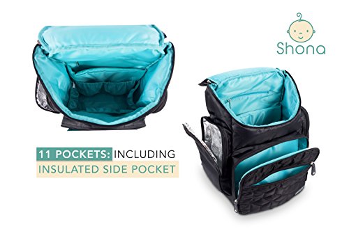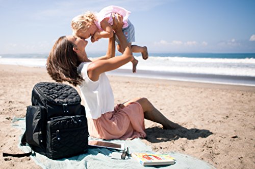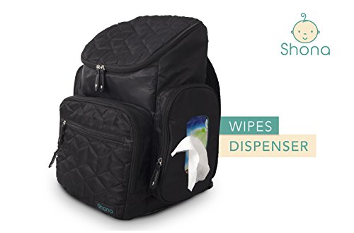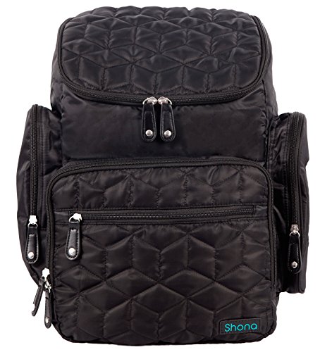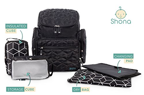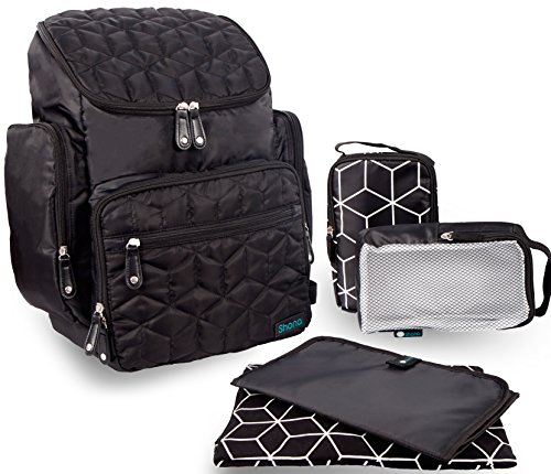 Shona Quilted 5 Piece Diaper Bag Backpack Set, Dry bag and changing pad, Upgraded zippers (Black)