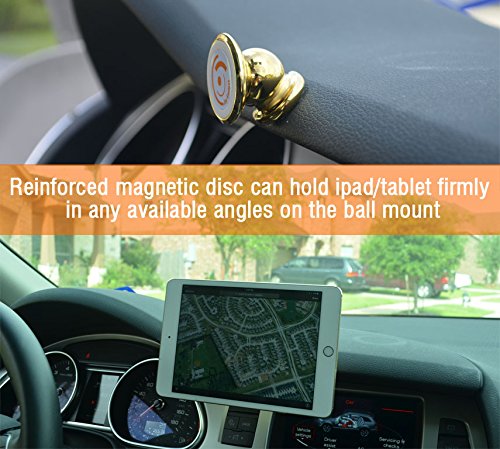 Reinforced magnetic disc can even hold ipad/tablet firmly in any available angles on the ball mount.