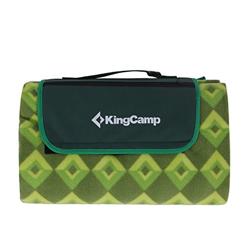 KingCamp Picnic & Outdoor Blanket, Portable Soft Fleece Beach Mat, 60 x 80 inch Extra Large Handy Mat with Water-Resistant Backing for Camping, Beach Wet Grass, Blue/Brown/Green