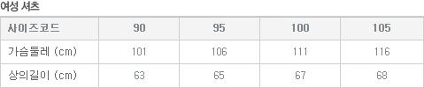 | 사이즈 조견표: