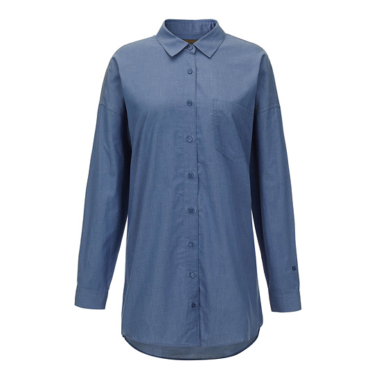 - 캐츄럴한 컬러의 데님 소재로 완성하여 감각적인 여성 데님셔츠.