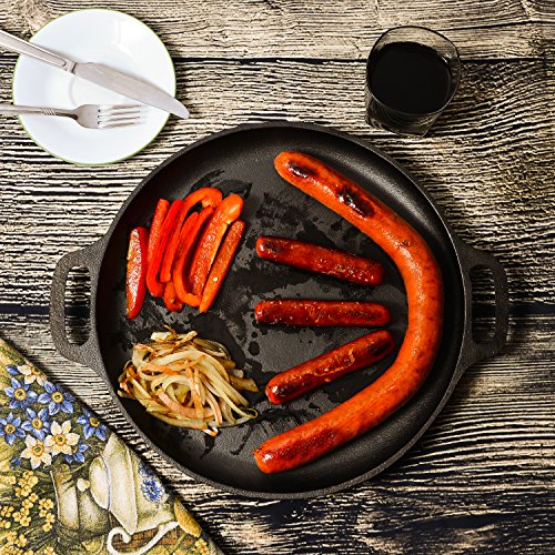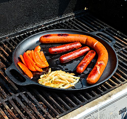 STRONG CAST IRON. Our strong cast iron provides superior heat retention and versatility. The more you use your cast iron, the better the seasoning becomes. With proper care, cast iron pan be used to make memories and delicious food pizzas for generations.