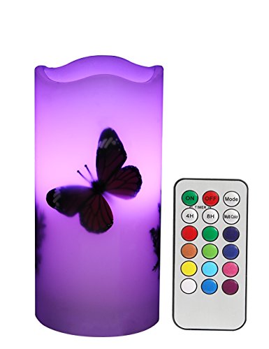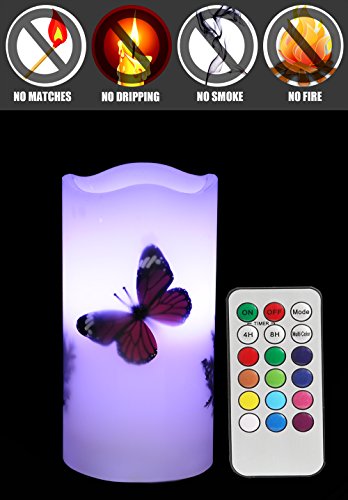 Candles Battery Operated with Remote Flameless Unscented Timer 6'' Tealight Butterfly & Plants Decor on Real Paraffin Wax LED Candle Lights 12 Color Changing for Home & Kitchen Indoor/Outdoor