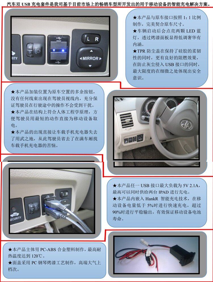 Dedicated series of original dual-USB, 2 USB, respectively 2.1A, 1.2A. Can give mobile phone Tablet PC fast charge. But also the perfect support Apple series mobile phone music, cool!
