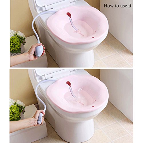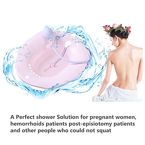 Benefits: 1.Dredge the meridians, blood circulation 2.Treatment of genital/anal problems 3.Prevention of postpartum gynecological inflammation 4.Drug penetration benefit 5.Improve human microcirculation Giveme5 Durable Home Sitz Bath with Flusher, Avoid Squatting for Pregnant Women, Hemorrhoids Patients on the Toilet Material: Soft nano medical polymer materials Dimension 15.47" x 14.56" x 5.31"(Inside diameter:11.41" x 7.08" ) Product temperature: 120℃ Volume: 2.5L Helps treat hemorrhoids and other conditions in the anal and genital areas Design for easy cleaning bath without squatting .Perfect for pregnant women, hemorrhoids patients and other people should not be squatting. Package included:1 x Sitz Bath with Flusher 0