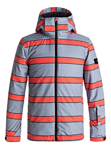 Studio : quiksilver Publisher : quiksilver Binding : Misc. Product Description Snow jacket for boys 8-16. Features include: waterproofing: 10K Quiksilver DryFlight® technology, fabric: polyester Oxford weave, fit: regular, insulation: Warmflight® [Fill weight: 120g body, 80g sleeves, 60g hood], lining: taffeta and features: key clip. 0