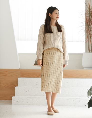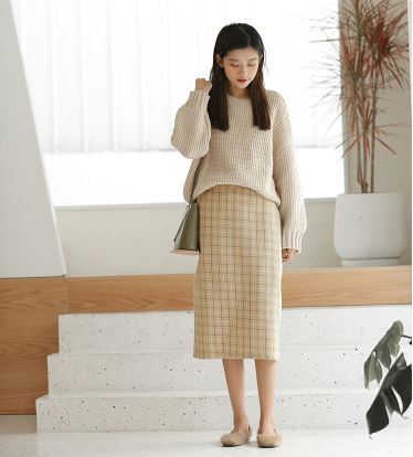 落ち着いた色合いのチェック柄が大人女子にピッタリのウールスカートのご紹介です。