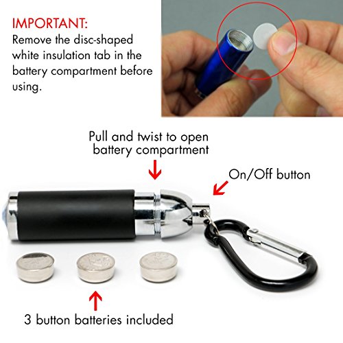 FREE GIFT & 1 YEAR WARRANTY: A gift of an aluminum carabiner keychain LED flashlight (batteries included) is included with every purchase. Please see the picture illustration on the listing for detailed instructions on changing batteries.