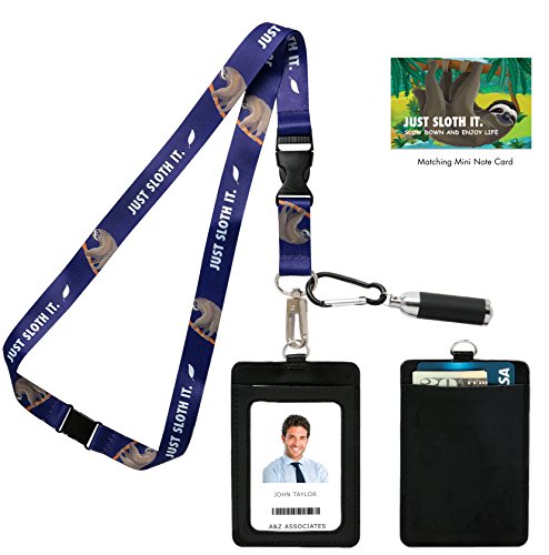 Just Sloth It Print Lanyard with PU Leather ID Badge Holder, Safety Breakaway Clip and LED Keychain Flashlight. Lanyard for Cruise, Trips and Work. Nike Just Do It Parody.