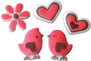 Valentine Love Bird Assortment Edible Sugar Decorations for Cakes and Cupcakes 24 count