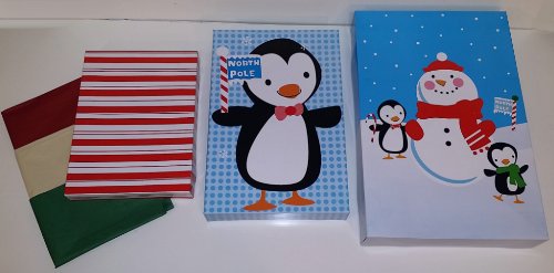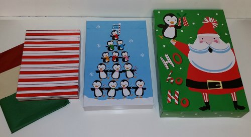 - Title : Christmas Gift Boxes, Assortment of Adorable Holiday Themes, with Lids, Tissue Paper, & Gift Tag Stickers (20-Pack Assorted Sizes Small-Medium-Large [Pengiun Snowman Santa])