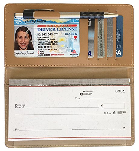 Binding : Apparel Product Description This Classic Fleur De Lis leather checkbook cover has a built in writing shield for writing duplicate checks. There 4 slots for keeping credit cards, a pen holder and a window slot. This checkbook cover comes in a durable design that can last for years. 0