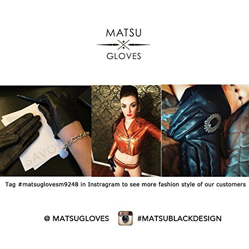 Binding : Apparel Product Description We carefully select the finest lambskin and leather for beautiful textures: When you purchase a pair of Matsu handcrafted gloves, we sincerely promise you all the details, quality and style you have a right to expect along with warm and cozy hands for the winter. We guarantee our gloves to be lint-free, wear-resistant, flexible, breathable, and that they will hold their shape wearing after wearing. Matsu gloves stand the test of time, conforming to the shape of your hand for a custom fit over time. The addition of a fine pair of gloves adds just the right touch of sophistication to any ensemble. We guarantee you will receive compliments on your Matsu gloves-they make excellent gifts! Size Chart: Measurement for women gloves: Size S= 7"(16.7- 17.6cm)-Middle finger=8.1cm Size M= 7 1/2" (17.7-18.4 cm)-Middle finger=8.4cm Size L= 8" (18.5-19.2 cm)-Middle finger=8.7cm Size XL= 8 1/2" (19.3 - 20 cm)-Middle finger=8.7cm Measurement for men gloves: Size S= 9" (20.0-20.8 cm)-Middle finger=8.8cm Size M= 9 1/2" (20.9 - 21.6 cm)-Middle finger=9.0cm Size L= 10" (21.7 - 22.4 cm)-Middle finger=9.2cm Size XL= 10 1/2" (22.5 - 23.2 cm)-Middle finger=9.4cm Because gloves are sent when it just finished, so when you receive it, maybe it will smell bad. This is normal. But you just need to place gloves at ventilated place several days. The smell will gone. Don't do this: 1. Rub on sharp or rough objects 2. Place under the sun directly 3. Dry it with a hair dryer
