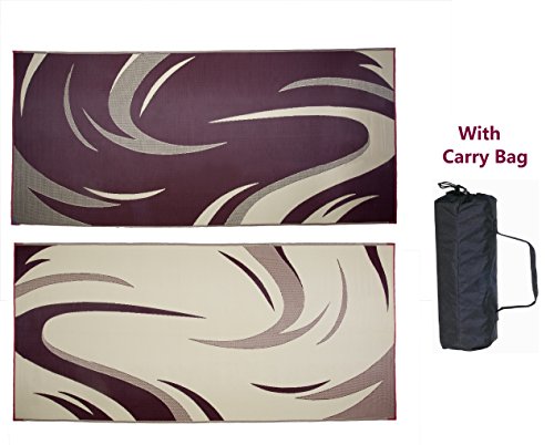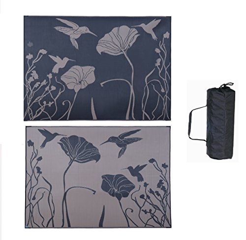 This reversible outdoor mat is designed for home patio or garden, creating your RV outdoor space, afternoons in the park or days at the beach. Sweep clean with a broom or spray clean with water. Woven polypropylene dries quickly to prevent mold and mildew and is coated with UV protection to resist sun damage and fading. Corner loops can be staked to hold it in place. Folds easily for storage in included carrying bag. Note: Viewing colors on the internet can be difficult. Different monitor and screen settings may not represent exact color hues. We do our best to represent the colors as accurately as possible.Feature