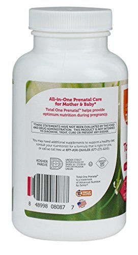 Zahler's Total one Prenatal is an all-in-one prenatal care for mother and baby. During the early months of pregnancy, the developing fetus uses essential nutrients to form cells and organs. The absence of these nutrients can result in permanent birth defects. Zahler's total one prenatal provides optimum nutrition during pregnancy in a convenient once-daily capsule. Total one prenatal can be taken while nursing as well as during pregnancy, providing nutritional fortification that benefits both mother and baby.Feature
