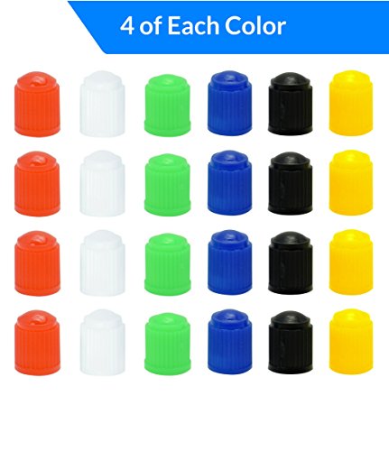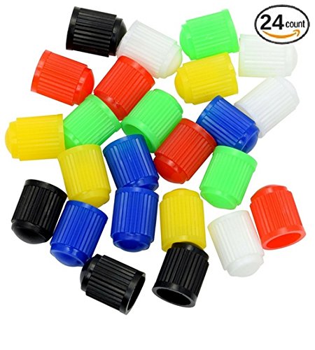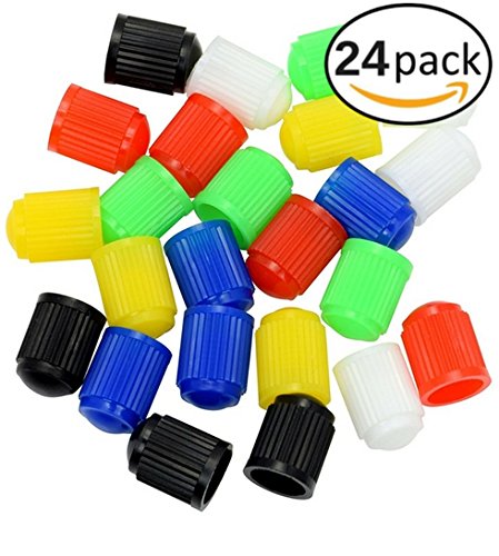24pcs Plastic Bike Tire Valve Caps: 4 x Blue 4 x Green 4 x Red 4 x Black 4 x Yellow 4 x White