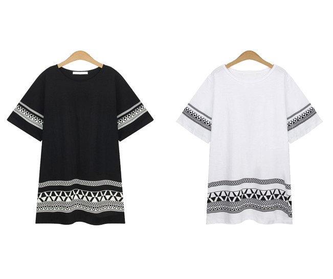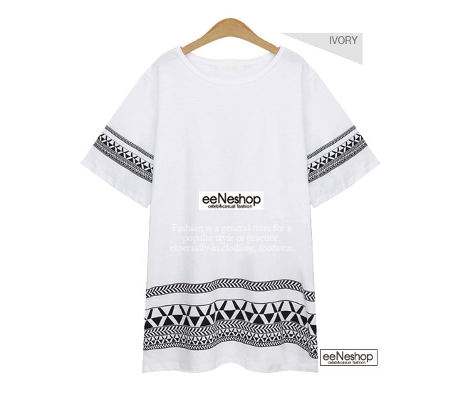 バイカラーのジオメトリック柄がワイドなサイズ感を引き締める♪