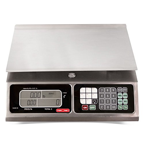 TORREY LPC40L Electronic Price Computing Scale, Rechargeable Battery, Stainless Steel Construction, 100 Memories, 8 Direct Access Keys , 40 lb