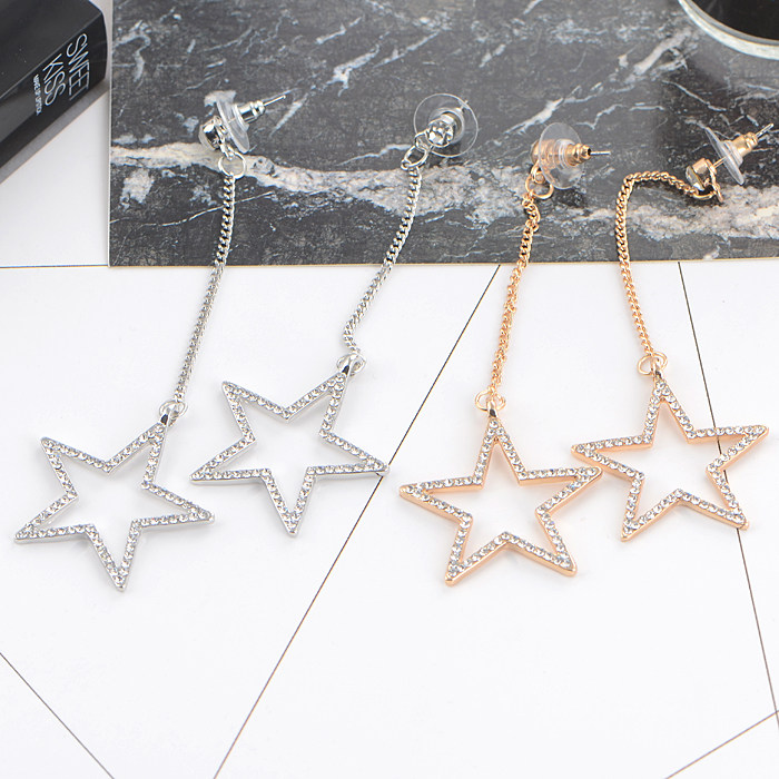 Whether in the fashion industry or the jewelry industry, Designers are very fond of using stars as creative elements or themes This star earrings are gold and silver, Big stars inlaid with bling bling rhinestones Wear a special sense of presence, Beauty burst! Baby material: high quality copper crystal rhinestones