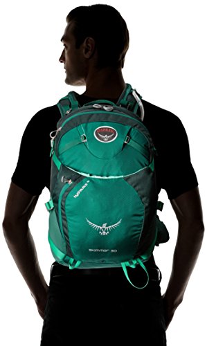 -. Binding : Sports -. Brand : Osprey -. Department : unisex-adult -. Feature : Trekking poles easily attach to the front of the pack using secure Angled buckle straps / An external reservoir sleeve and sewn-in reservoir hanger allows for easy Loading/unloading of hydration reservoirs / The front panel shove-it pocket provides a place to keep gear accessible and includes a zippered stash pocket to keep other items secure / Zippered hip belt pockets provide easy access to small items / Upper and lower side compression straps stabilize load. The lower compression straps also serve as external gear carry straps -. Label : Osprey -. Manufacturer : Osprey -. Model : 10000239-P -. MPN : 10000234 -. PackageQuantity : 1 -. PartNumber : 10000234 -. ProductGroup : Sports -. ProductTypeName : OUTDOOR_RECREATION_PRODUCT -. Publisher : Osprey -. Size : One Size -. Studio : Osprey -. Title : Osprey Packs Women's Skimmer 30 Hydration Pack