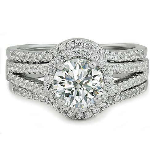 -. Feature : HIS AND HERS WEDDING RING SETS features women's genuine .925 Sterling Silver 2.62 carats equivalent 3-piece wedding and engagement rings set and men's solid Titanium CZ matching wedding band / WOMEN'S HALO WEDDING RINGS made from genuine .925 sterling silver, 1.67 carat main stone top graded Cubic Zirconia, 95 accent CZ (total 0.95 carat) provide extra sparks. / Men's 8mm wide solid titanium wedding band features 9 sparkly cubic zirconia for total 0.56 carat, non-tarnish and non-oxidited, comfort-fit design inner band makes it easy for daily wear. / PERFECT HIS AND HERS WEDDING RING SETS. This gorgeous couples rings sets will be a perfect fit for you wedding. / FREE GIFT: One pair of sterlgin silver stud earrings, limited time only!