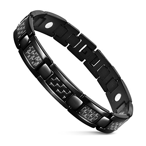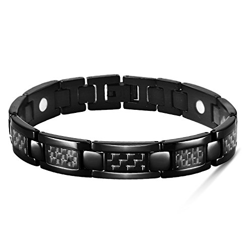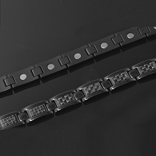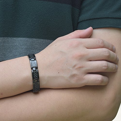 맨즈 검은 탄소 섬유 팔찌 항피로 수면 개선 자기 스테인레스강의 팔찌 건강 블랙 22cm 【사이즈 조정 공구가 부속】-JFUME