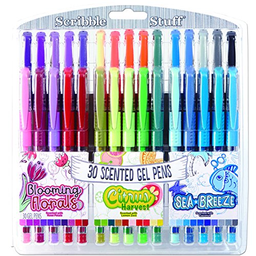 -. Feature : Includes 30 scented gel pens / Blooming florals, citrus harvest, and sea breeze / Great for home, School or Office