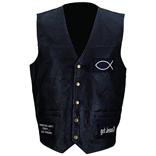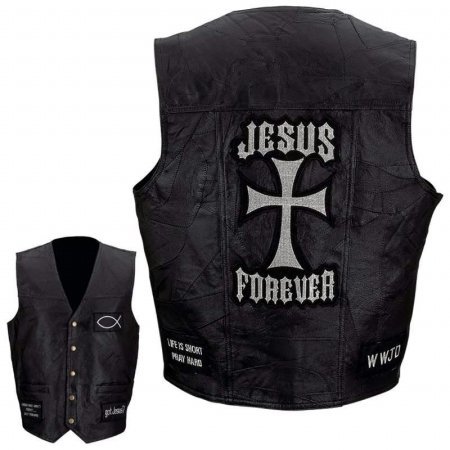 Binding : Apparel Product Description Features antique brass hardware, 1 interior pocket and 2 exterior pockets. Fully lined. Patches include: extra large JESUS FOREVER cross on back, WWJD, LIFE IS SHORT, PRAY HARD, Christian fish symbol, got Jesus? and CHRISTIANS AREN'T PERFECT, JUST FORGIVEN. Embroidered patches are included and already sewn in place! 0