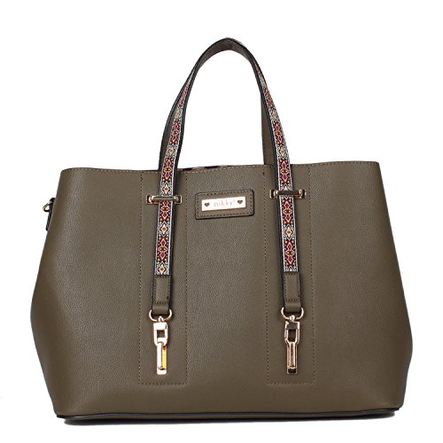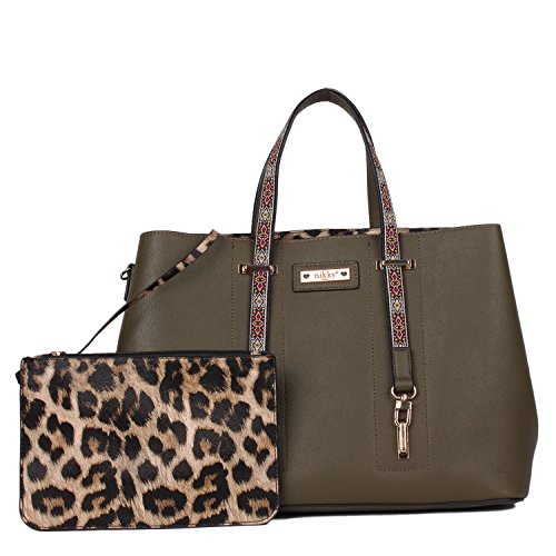 Nikky Women's Spacious Large Satchel Handbag, Leopard Print Design Shoulder Bag, Olive, One Size