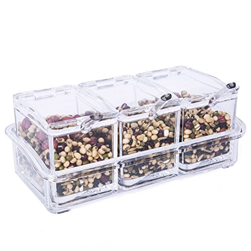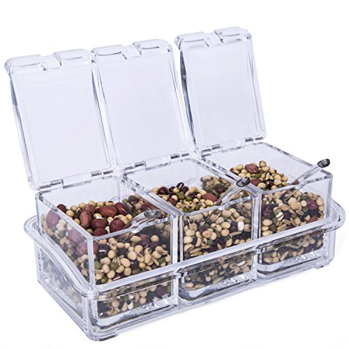 Lebather Square Acrylic Spice Bottle Sets with 3 Spoons Seasoning Pots Spice Racks Kitchen Storage Organizer ,Set of 3