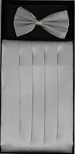 Binding : Apparel Product Description Brand New Men's Solid SILK SILVER-GRAY Grey Cummerbund and BowTie Set. This is a Fashionable Pleated Classic Solid Color Design Cumberbund and Bow Tie great to wear with a tuxedo suit for that special occasion, wedding, or any formal event. The Cumberband and bowtie is a Standard One Size Fits All. We have additional cumberbunds with pleats and bowties in our other listings.? Take a look at more cummerband and bowtie sets in our other listings.?? Check out our other solid colors cummerbands bow ties and paisley design cummerbunds and bowties. Please also Check Out Our other listings for solid color Dress Vest and Necktie Sets that Match this cumber band and bow tie. 0