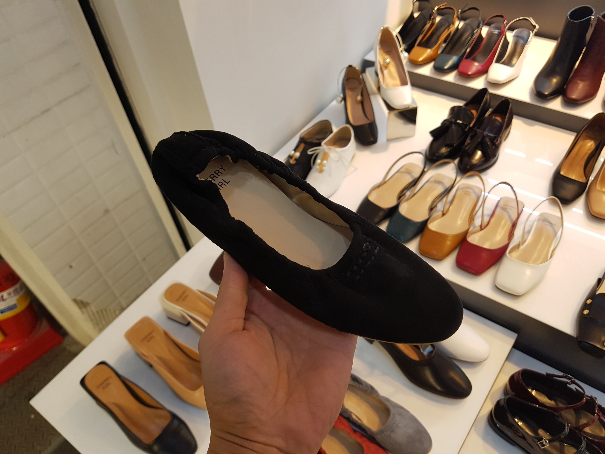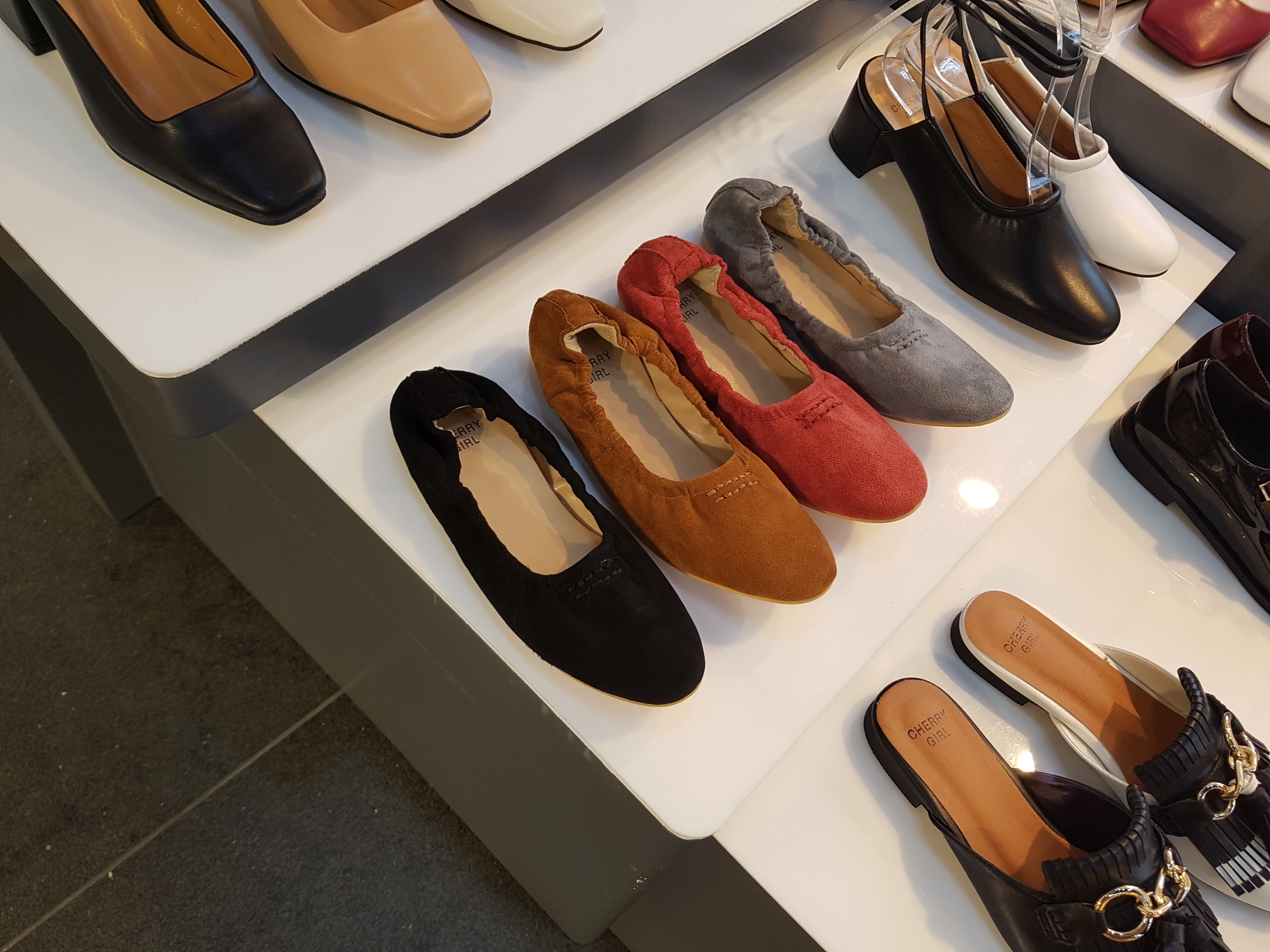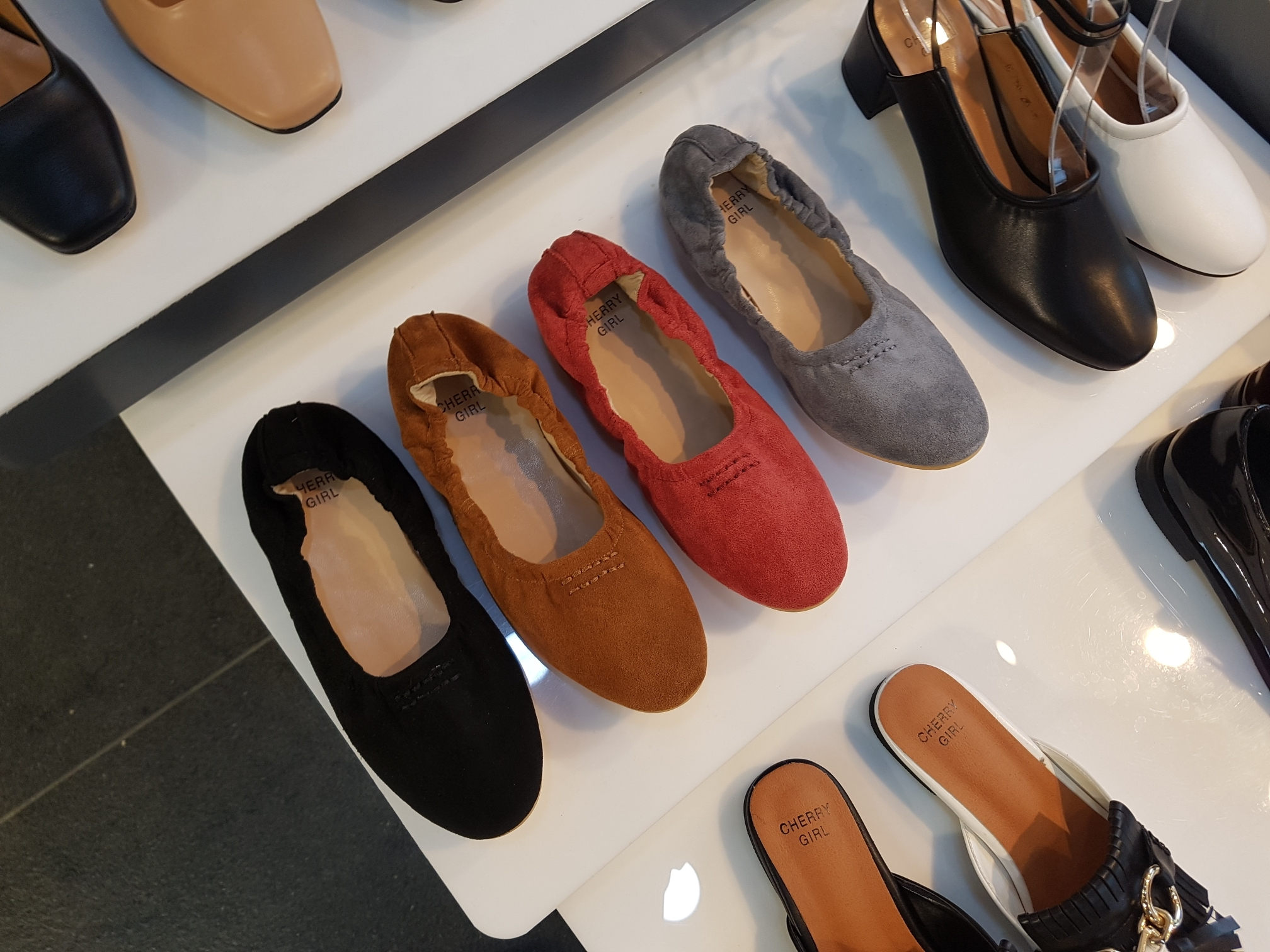 Suede Banding Flat Shoes 0.8cm Black Gray Brown Pink