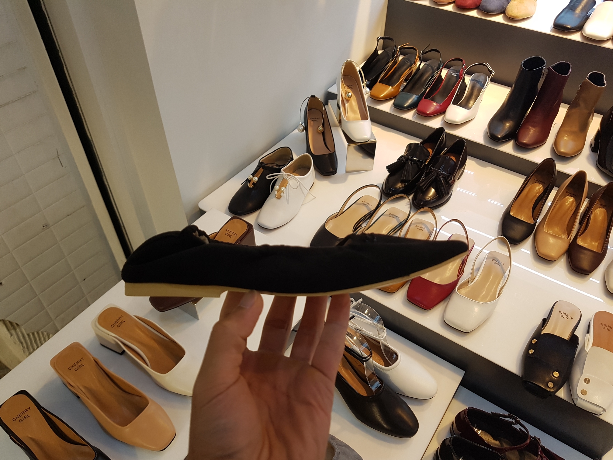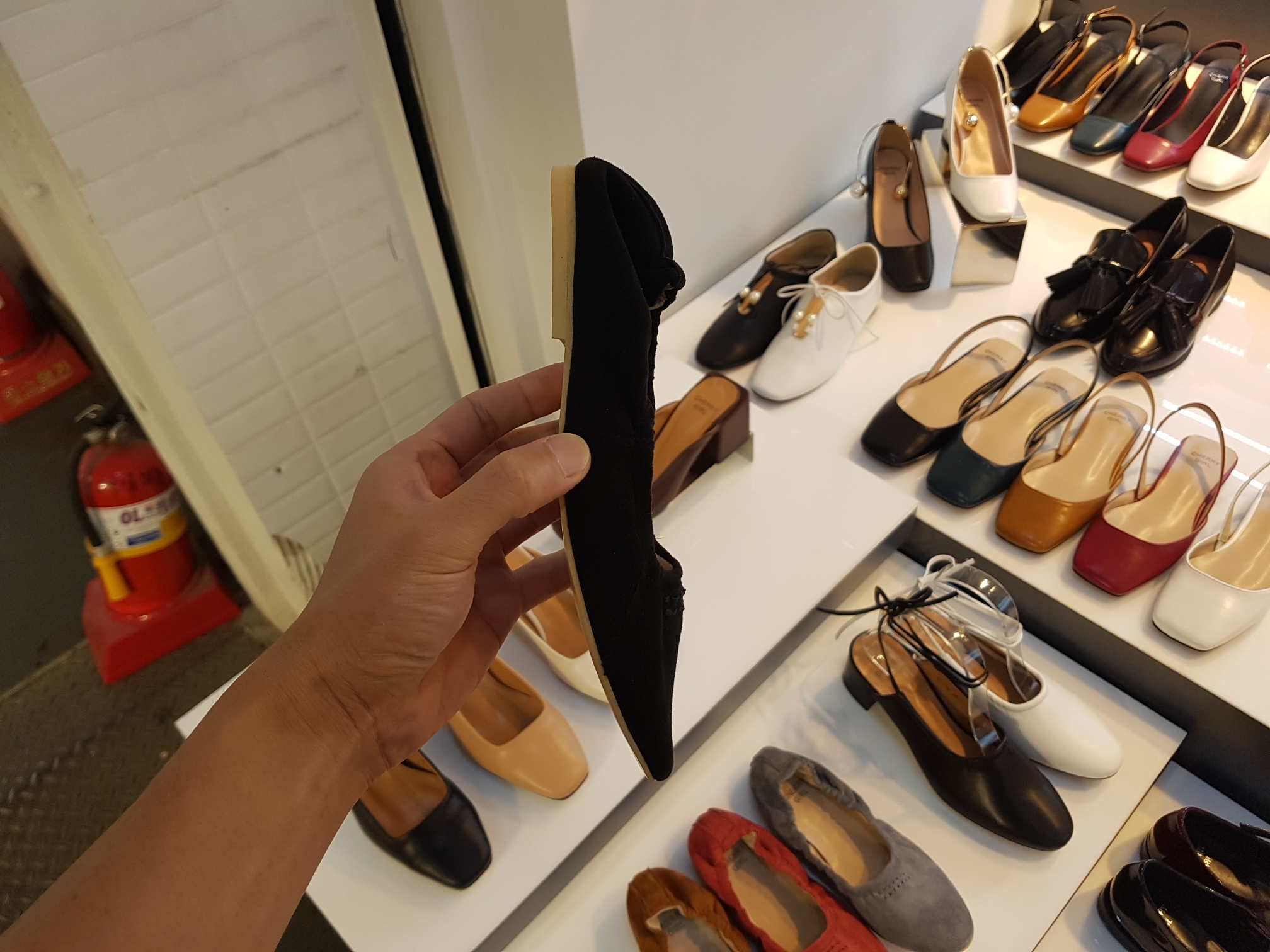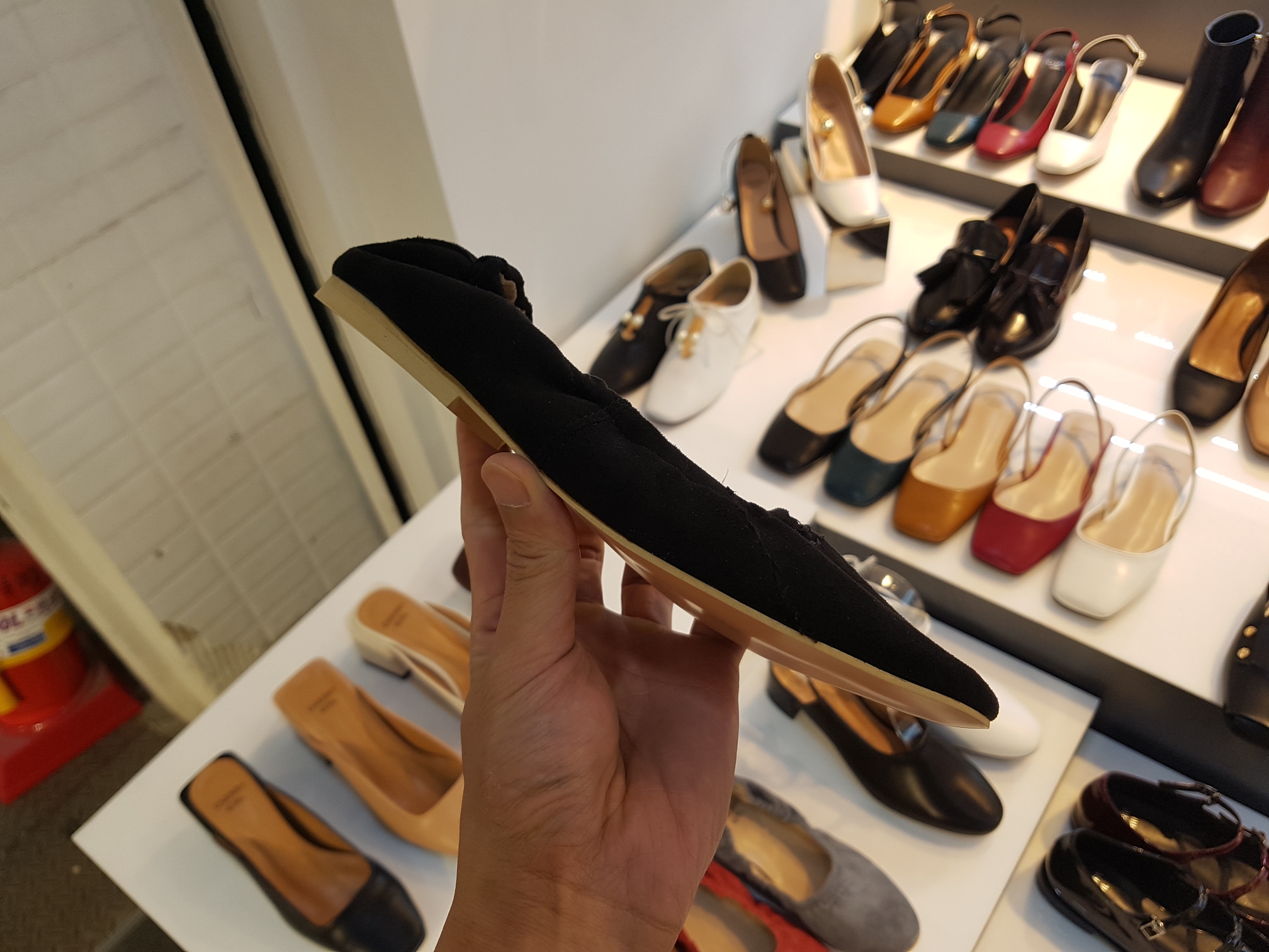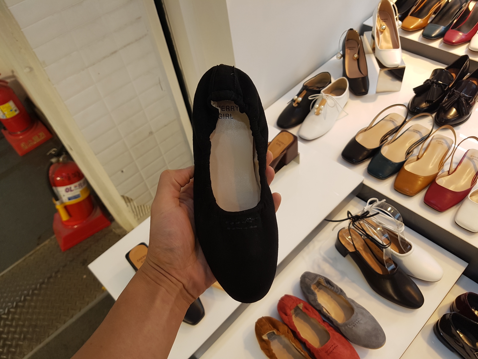 Suede Banding Flat Shoes 0.8cm Black Gray Brown Pink