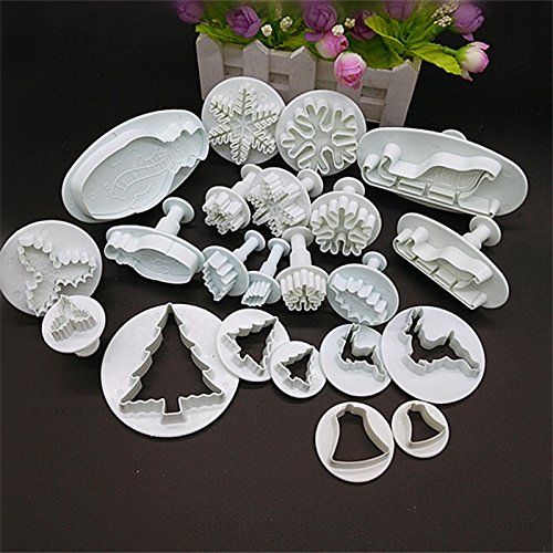 HomeyHouse 22 Pieces Fondant Cake Cookie Plunger Cutter Sugarcraft Snow Flower Christmas Tree Leaf Shape Decorating Mold DIY Tools