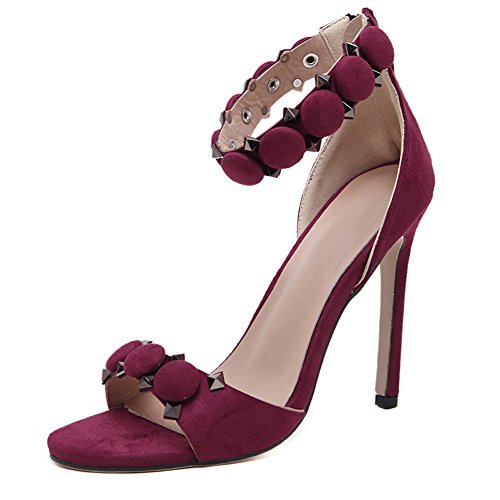 (fereshte)/Women's/Sandals/DIRECT FROM USA/fereshte Women's Summer Stiletto High Heels Ankle Strap Back Zipper Suede Studs Retro Roman Sandals