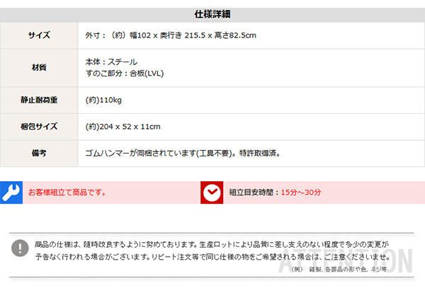 ●耐荷重は安心の(約)110kg