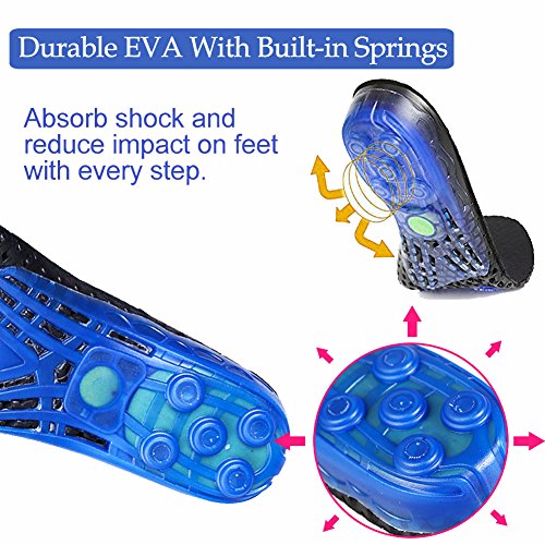 SUPER SHOCK ABSORPTION: The shock-absorbing heel at the bottom with five high-Impact springs fully absorbs shock and reduces impact on feet with every step. Durable Hard EVA heel with strong support is suitable for high-intensity exercise and helping reducing exercise-induced fatigue, like shin splints, runner's knee, plantar fasciitis.