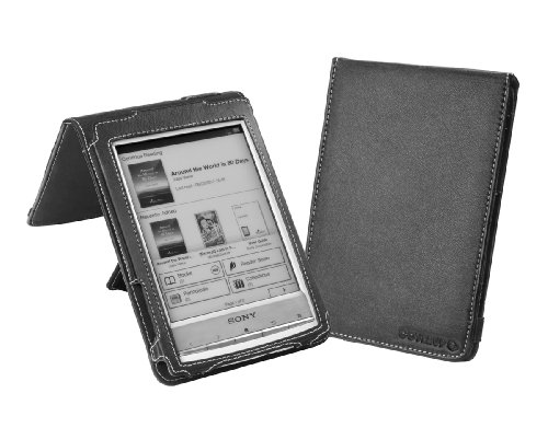 -. Feature : Sturdy and stylish genuine leather case for your Sony Reader PRS-T1 / PRS-T2. Fits Sony Reader PRS-T1 / PRS-T2 only / Nappa leather exterior with black micro-fibre interior. Soft yet strong and hard wearing / Flip Stand function allows convenient hands free viewing of your PRS-T1 / PRS-T2 / Precision cut outs for on/off button, stylus pen, navigation and charging port. Durable elastic closure securely fastens the case for maximum protection / Now with added safety. Our new Cover-Flap feature securely fastens your PRS-T1 / PRS-T2 and prevents any accidental slips or falls from your Cover-Up