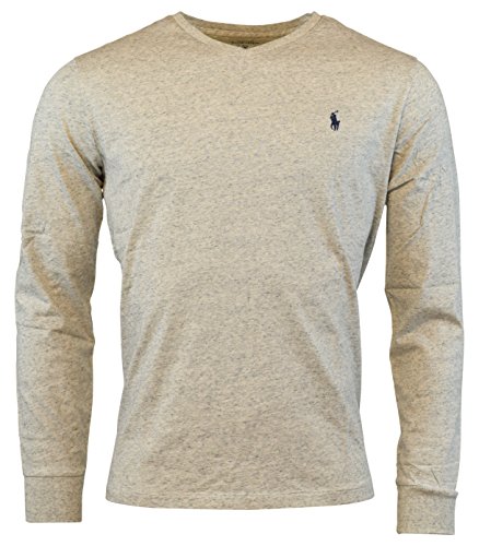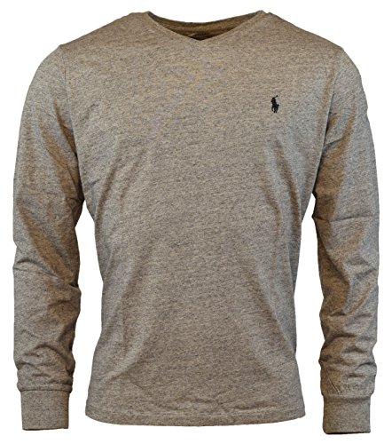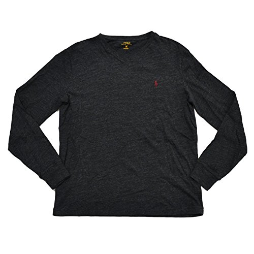 Polo Ralph Lauren V-neck T-shirt Mens Long Sleeve Classic Fit (L, Light Black Heather)