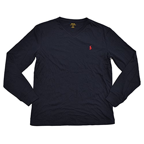 Polo Ralph Lauren V-neck T-shirt Mens Long Sleeve Classic Fit (L, Ink)