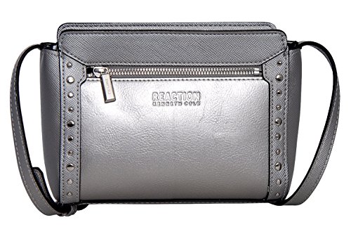 -. Brand : Kenneth Cole REACTION -. Department : womens -. Feature : • Size 9" X 6" X 3" . Decorative metal studs / • Rich faux leather Look. New Reaction Kenneth Cole Embossed Logo / • Top side zipper closure + 1 large front side zipper pocket / • One inner zipper pocket +1 Open V shape easy access inner Slot -. ProductGroup : Shoes -. ProductTypeName : HANDBAG -. Title : Kenneth Cole Reaction Dana Cross Body Bag