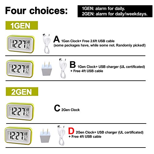 hito 2Gen touch clock: alarm for daily/weekdays. Perfect Nightstand, Bedside or Office Desk Alarm Clock!