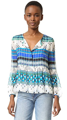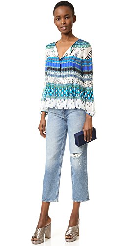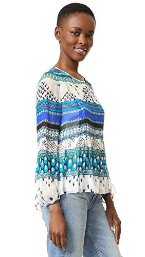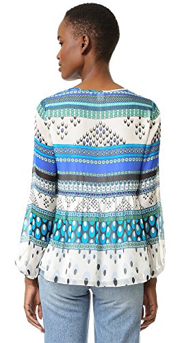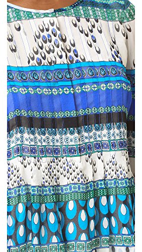 Mixed prints add a bold statement to this silk Diane von Furstenberg blouse. Pleats frame the concealed-button half-placket. Sheer sleeves and single-button cuffs.