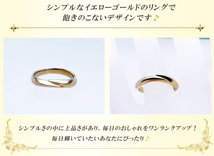 シンプルなイエローゴールドのリングです。普段使いにお勧めです。