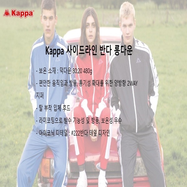 카파의 레트로 감성을 담고 있는 222반다 시리즈를 현대적으로 재해석하여 일상에서 가벼운 라이프스타일 과 운동에 접목시켜 편안한 데일리룩으로 연출이 가능한 라인.