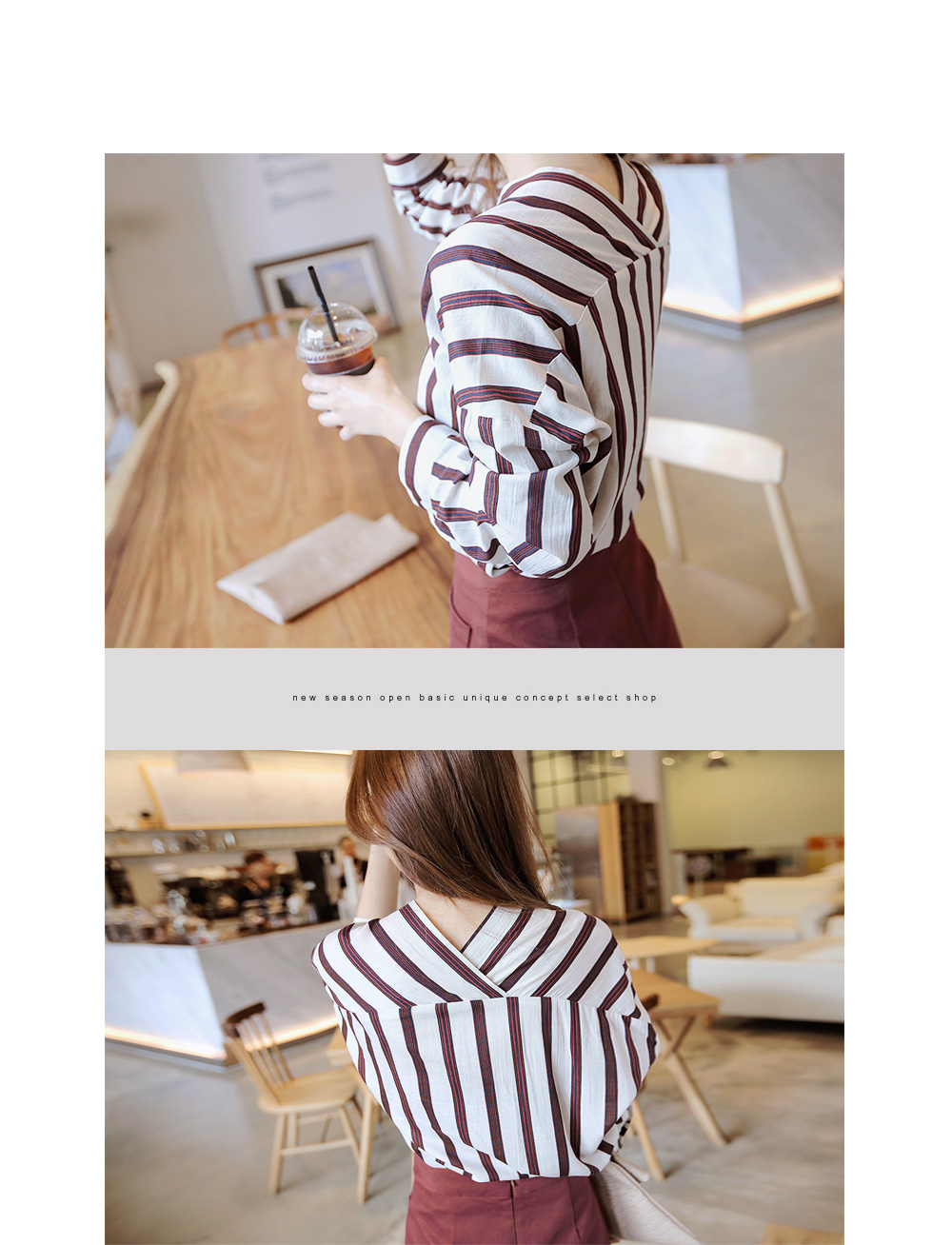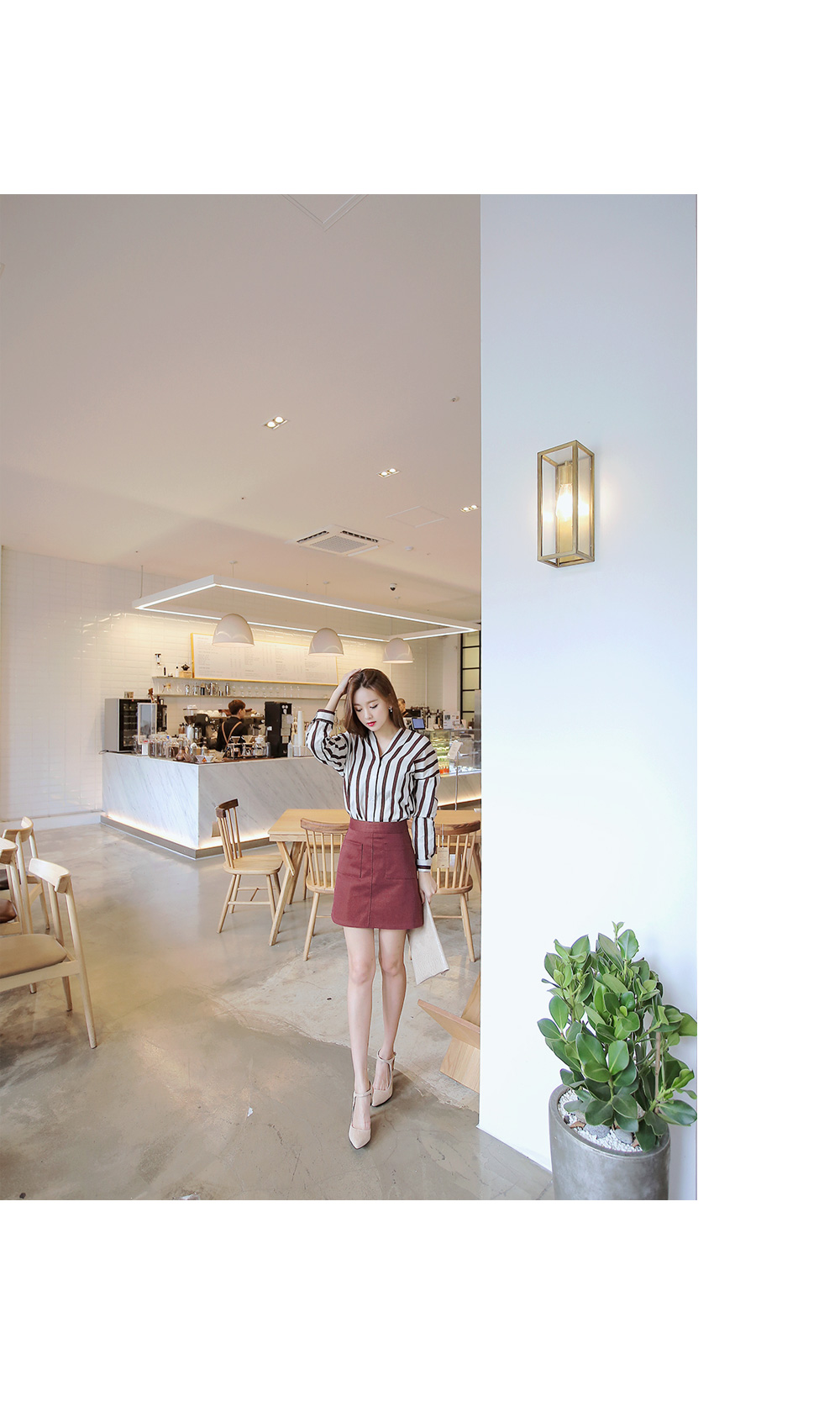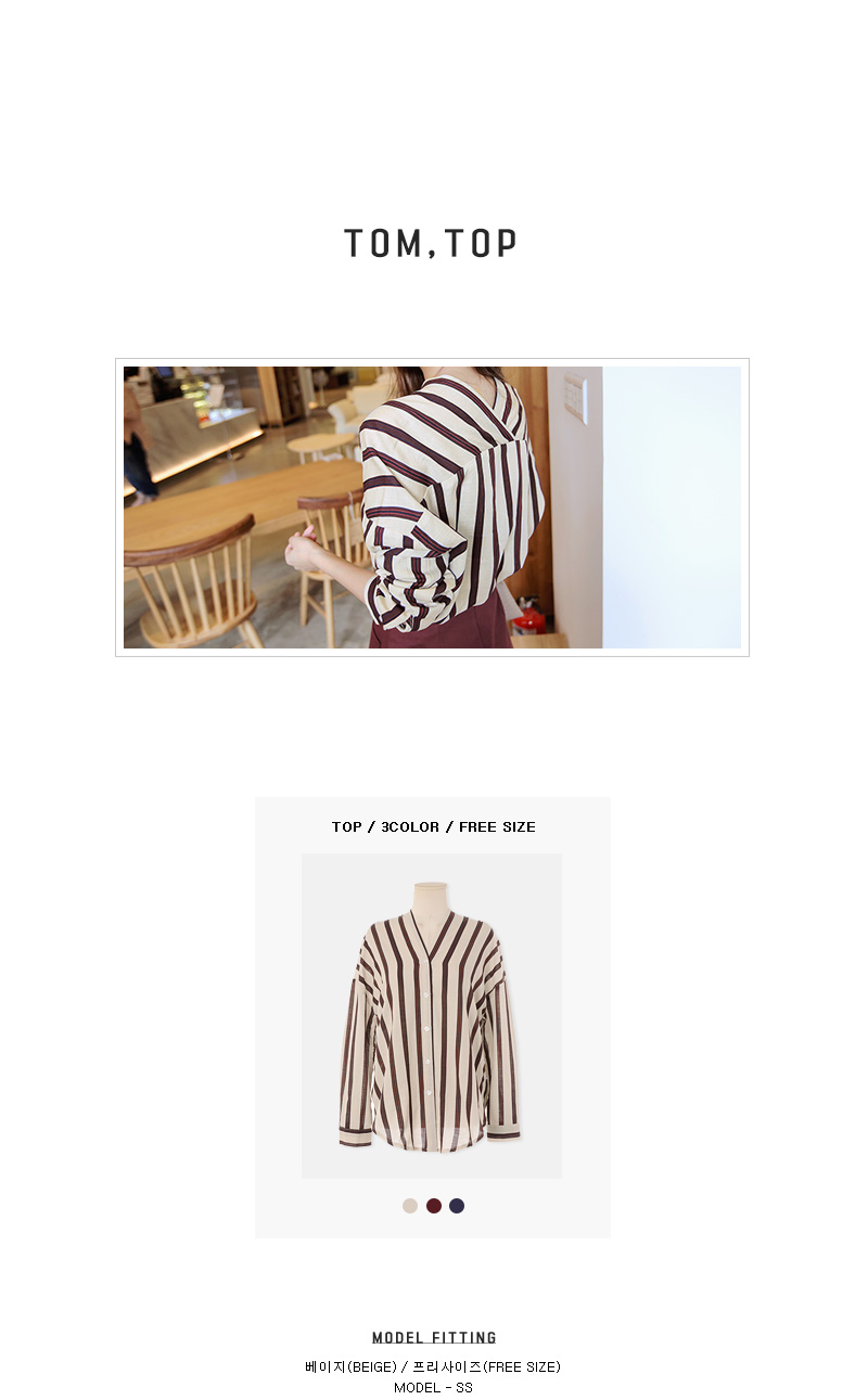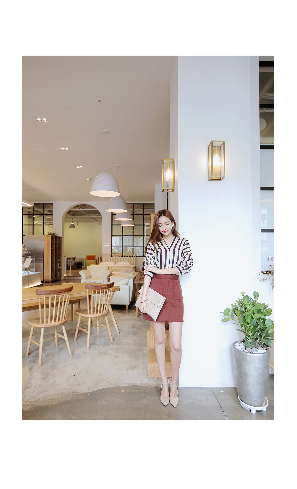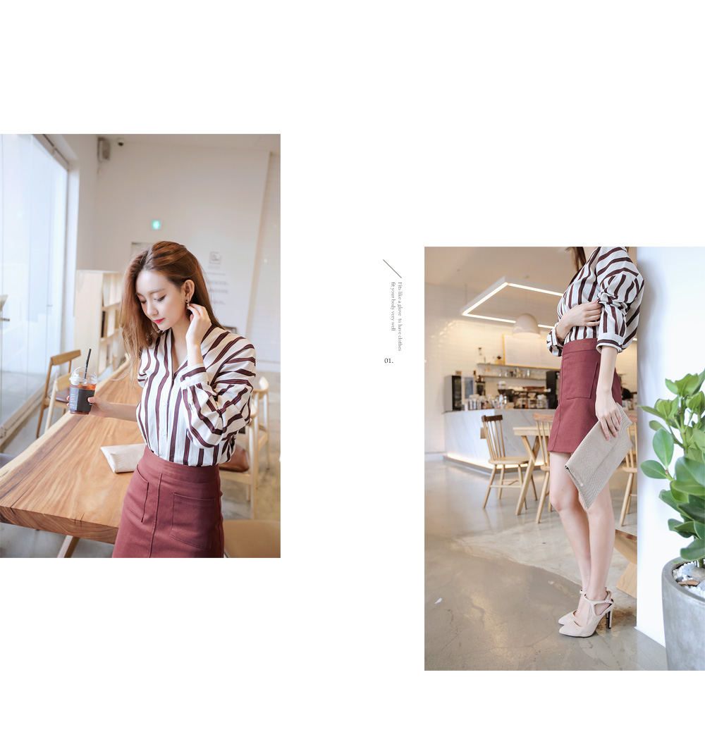 고급스러운 무드의 줄지 브이넥 셔츠를 소개합니다.